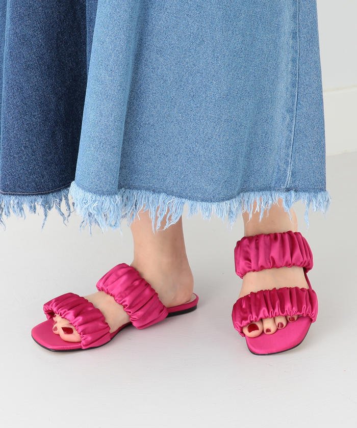 <Ray BEAMS(レイ ビームス)>の今シーズンのテーマカラーである5色を使用したサテンサンダル。