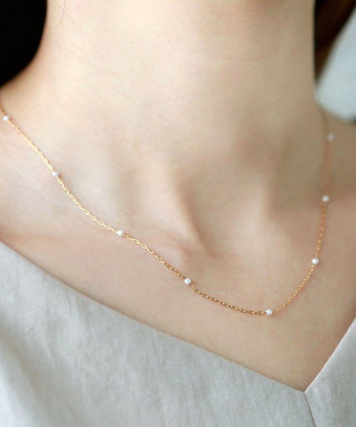 華奢なチェーンに小さなパールを散らした、繊細なデザインのネックレスです。