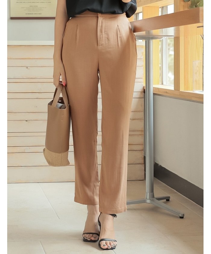 伸びるリネンタッチテーパードパンツ