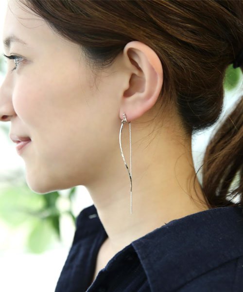 ウェーブバー&ロングチェーンイヤリング/queite