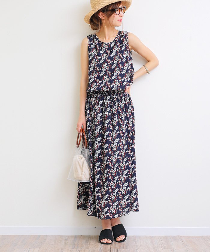 てろっとした落ち感と旬の花柄がフェミニン! ノースリーブ・ワンピースが入荷しました♪ 表面にリブのような凹凸感のある素材で 肌ざわりがサラッと爽やか。 ビンテージ調のプリントがこなれ感たっぷりな 1枚です♪ウエストはゴム入り、さらに ヒモで調節可能なデザインに。 サイドポケットなし。 裏地上部はさらっとした肌ざわりの生地を使用。 裏地下部はつるっとした滑りの良い質感に。 汗をかきやすい季節だからこそ、 裏地も使い分けた優秀itemです♪ ※裏地あり MODEL:身長158cm MODEL:身長162cm ※撮影時のライティング、ご覧になっているモニター・PC環境により 実際の商品と色味が異なって見える場合がございます。 ご了承の上お買い求め下さい。