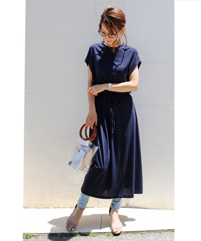 透け感のある薄手の柔らかなニットソーが 涼しげでこなれ感たっぷりな、 ドローストリング・ロングワンピが入荷しました♪ ウエスト部分はヒモで絞って お好みのシルエットにブラウジング可能。 ロング丈ながらも、ふわっと軽やかで ゆれるニュアンスがフェミニンな1枚です。 二の腕をほっそりみせてくれる ドルマンタイプのフレンチスリーブも◎!! インナーにペチコートを合わせて ワンピとして1枚で着るもよし、 デニムやレギンス、ワイドパンツと 重ねたコーデもオススメです♪ 裏地なし MODEL:身長162cm ※撮影時のライティング、ご覧になっているモニター・PC環境により 実際の商品と色味が異なって見える場合がございます。 ご了承の上お買い求め下さい。