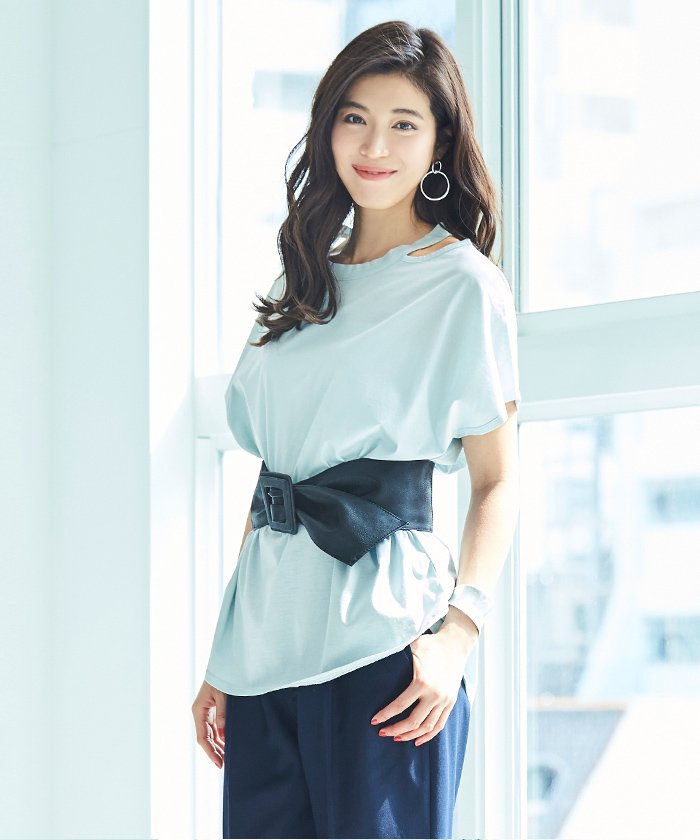 ベルト付スリットネックチュニック ユアーズ【ur's】 ウエストの太ベルトは取り外せるのでヘルシーな肌見せを叶えてくれるチュニック。・・ OUTLET PEAK (アウトレットピーク)* 546955-500397204 スマホで通販