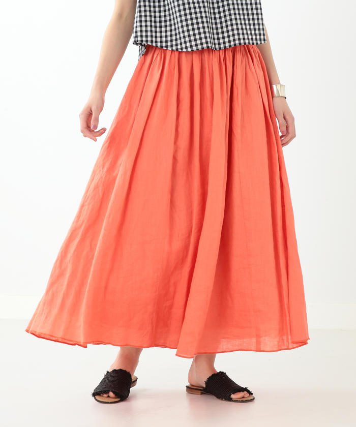 Ray BEAMS / 麻 マキシ ギャザースカート