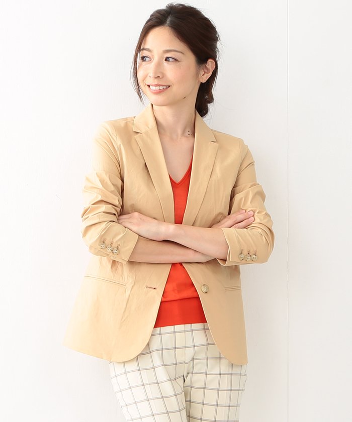 ストレッチ性のあるタイプライターを素材を使用したテーラードジャケット。少しシワ加工を施し、春夏らしい表情をプラス。今年らしく着こなすなら、前を開けて袖をたくし上げて。こなれ感のある装いをお楽しみいただけます。