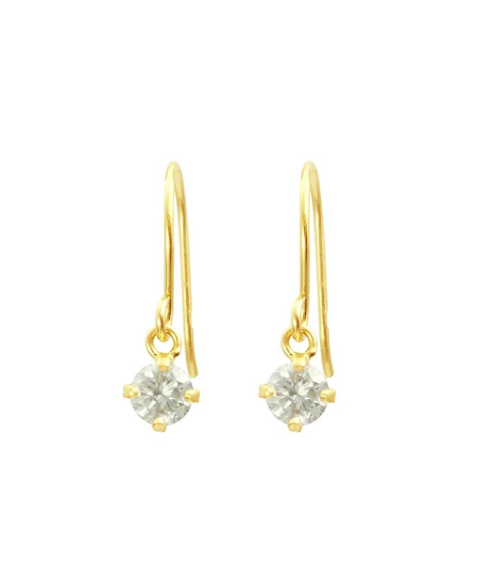 高級K18ゴールド 天然ダイヤモンド0.2ct 耳元でエレガントに揺れるフックピアス【K18YG イエローゴールド】