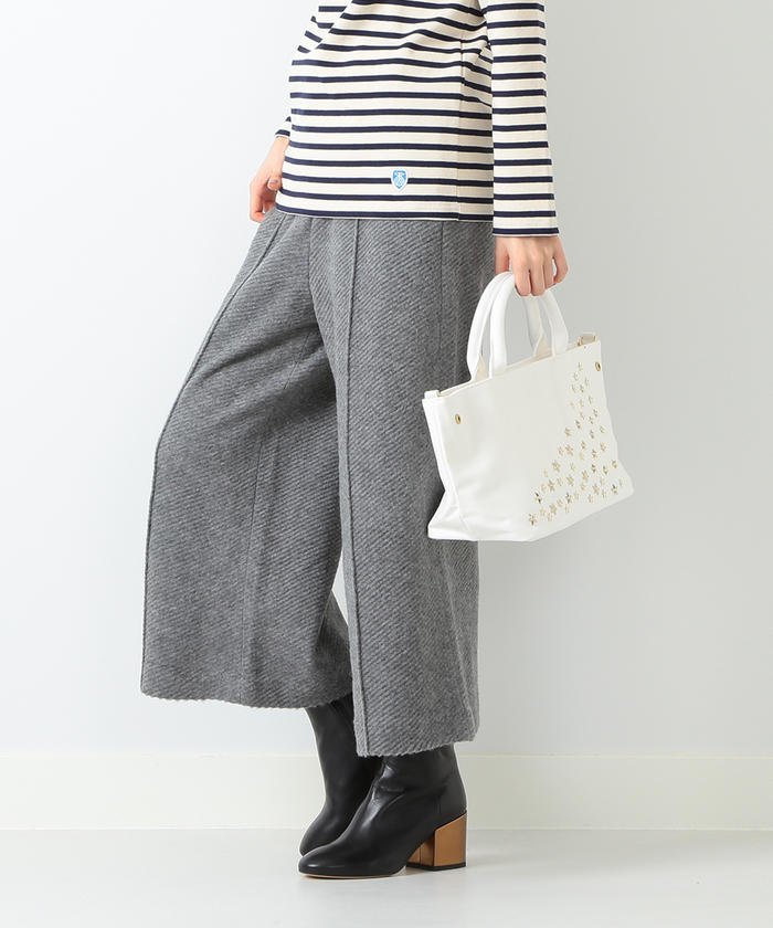 ツイルシャギー素材を使用したワイドパンツ。温かみがありながらも、軽量性にこだわった1枚です。 ウエストにはゴムを施し、ストレスフリーに穿けるところも◎。