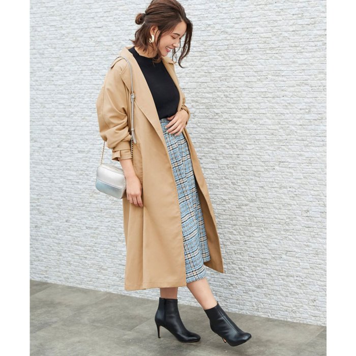 トレンド感のあるロング丈と程よいワイドスリーブで、さらりと羽織れば今っぽいシルエットに仕上がるトレンチコート。