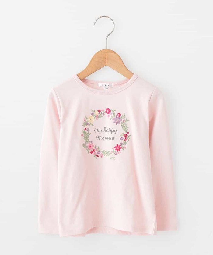 カラフルなフラワー刺繍が華やかな長そでTシャツです。