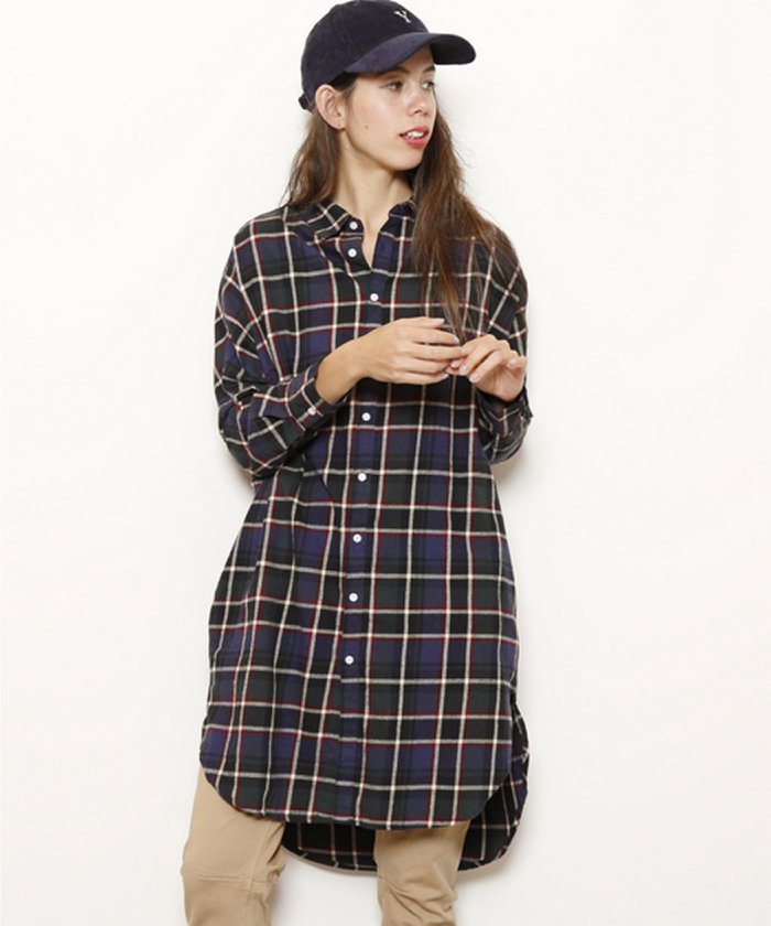 ドルマンシャツワンピース レイカズン【Ray Cassin】 ゆったりとしたドルマンスリーブと裾広がりのシルエットでチェック柄のシャツワンピースです。・・ OUTLET PEAK (アウトレットピーク)★ 546955-500637441 PC&タブレット&ipad&iPhone・Android・スマホで欲しいならココで通販