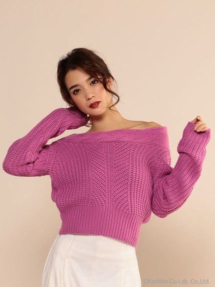 ケーブルオフショルニットトップス ロイヤルパーティー【ROYAL PARTY】 ややショート丈に仕上げているからオフショルダーでほんのりセンシュアルに。・・・ OUTLET PEAK (アウトレットピーク)* レディース ニット 546955-500683868 PC&タブレット&ipad&iPhone・Android・スマホで通販探せる