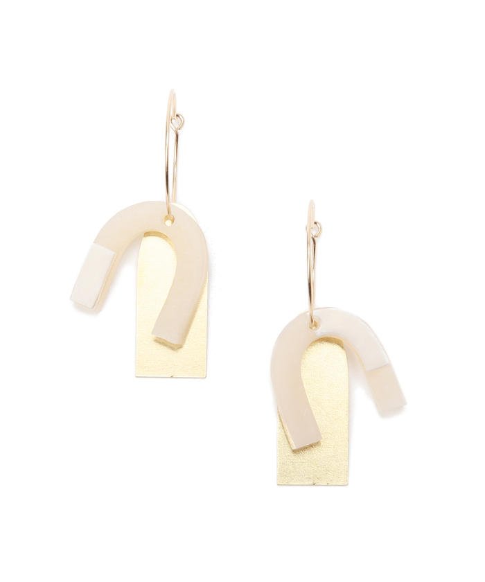 これからのシーズンにぴったりなオフホワイトのカラーが印象的なひと品。揺れるフープのデザインが耳元を華やかにに彩ってくれます。
